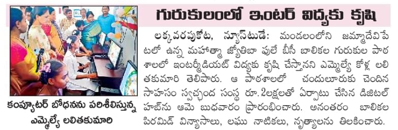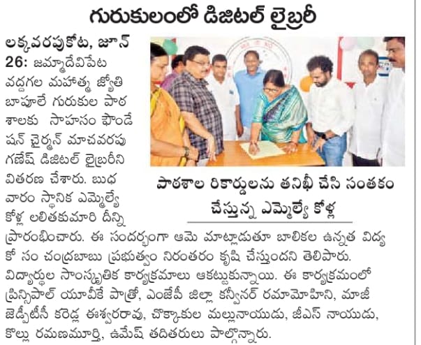We are thrilled to announce the launch of our latest initiative a fully equipped Digital Library at Mahatma Jyothiba Phule Girls high School in jammadevipeta, vizianagaram by srungavarapukota #M.L.A Sri Kolla Lalitha Kumari Garu.