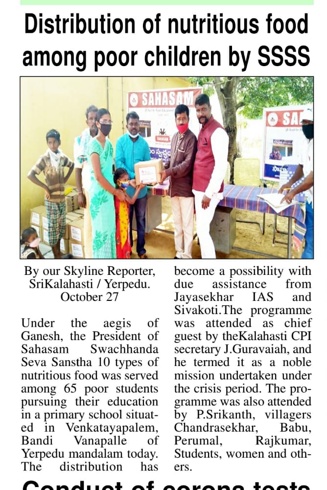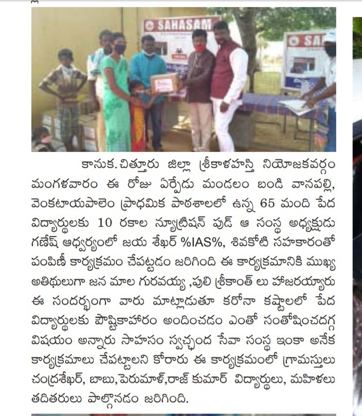 Sahasam Trust served nutritional kits to the adopted schools students of Anantapur, Chittoor, Nellore Districts in colloboration with the of Texas Instruments company.